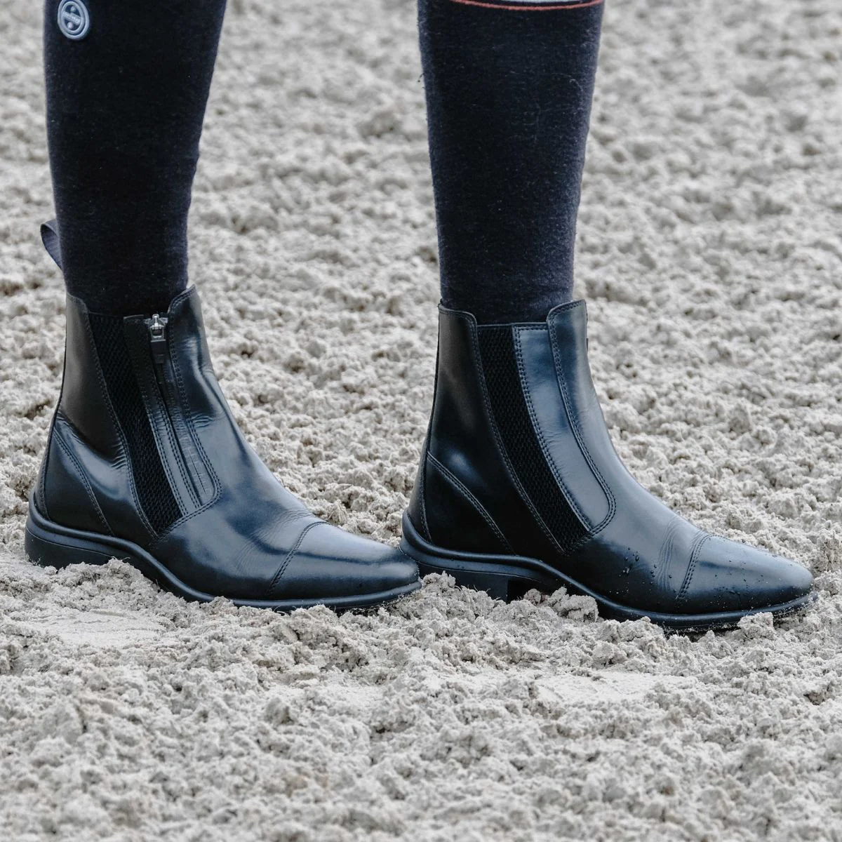 Boots avec zip EQUITHÈME – Sporty Ces boots pratiques allient souplesse et confort pour toutes vos séances d’équitation. Enfilage facile grâce au zip YKK extérieur permettant un chaussage rapide. Elastique « gaufré » à l’avant et élastiques larges sur les deux côtés. Taquets d’éperons latéraux et semelle extérieure en caoutchouc antidérapant. Durabilité assurée par un cuir de […]