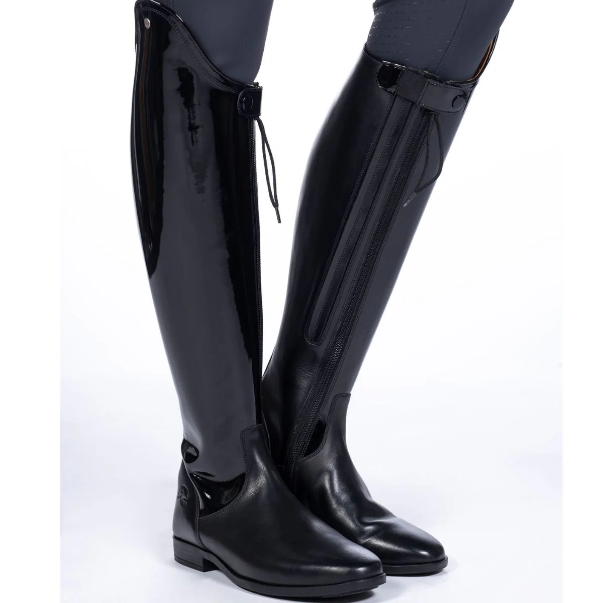 Élégantes et techniques, les bottes Lynette séduisent par leur design en cuir avec finitions vernies. Spécialement pensées pour le dressage.