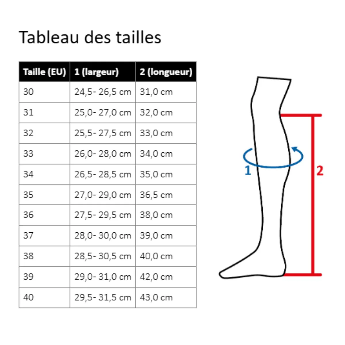 - Longueur standard avec tige étroite et garniture élastique pour un bon maintien du mollet.
