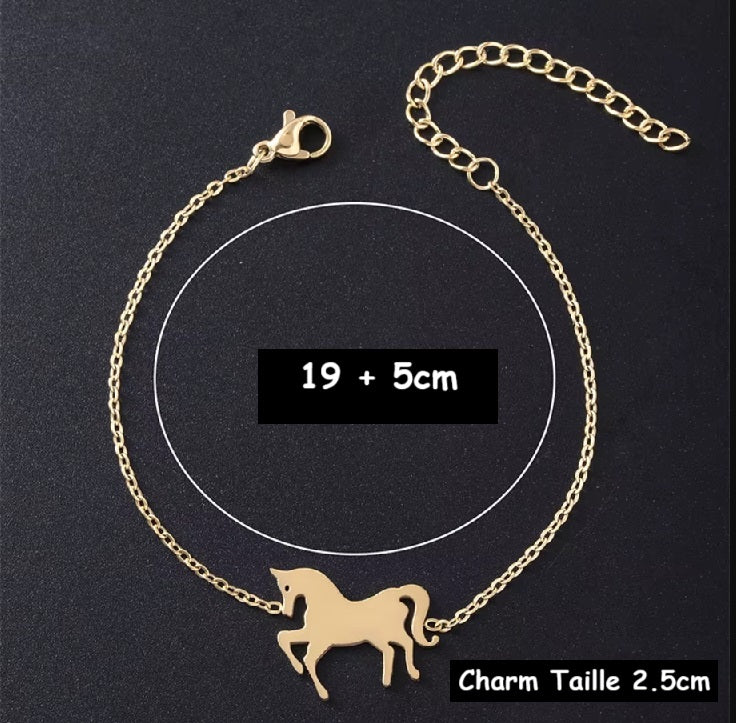 Un joli bracelet élégant orné d’une breloque cheval. Un cadeau parfait pour les amis et famille.