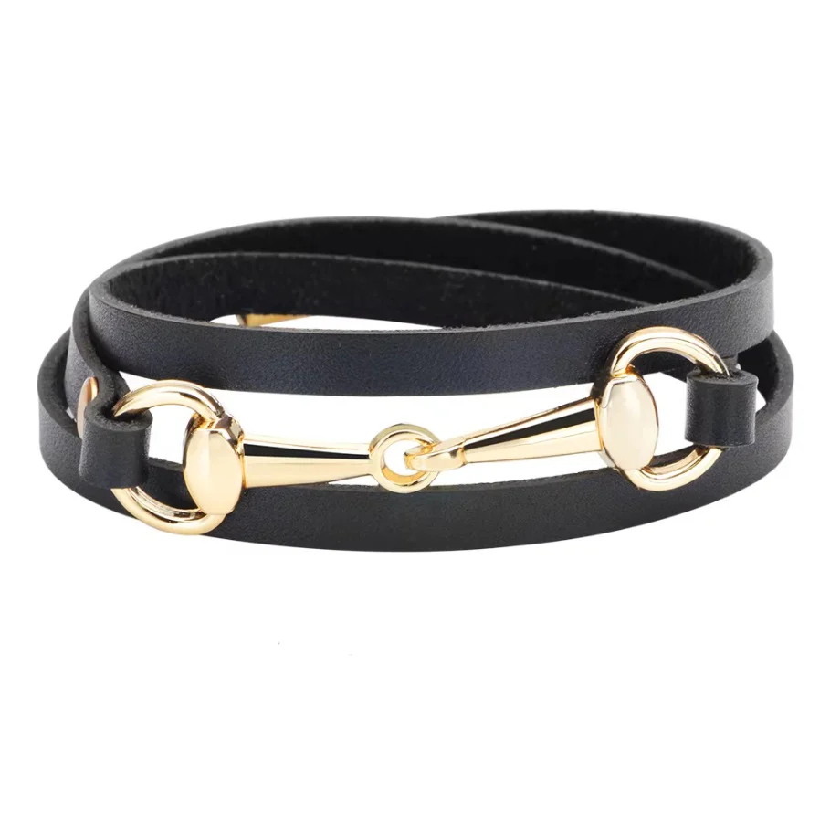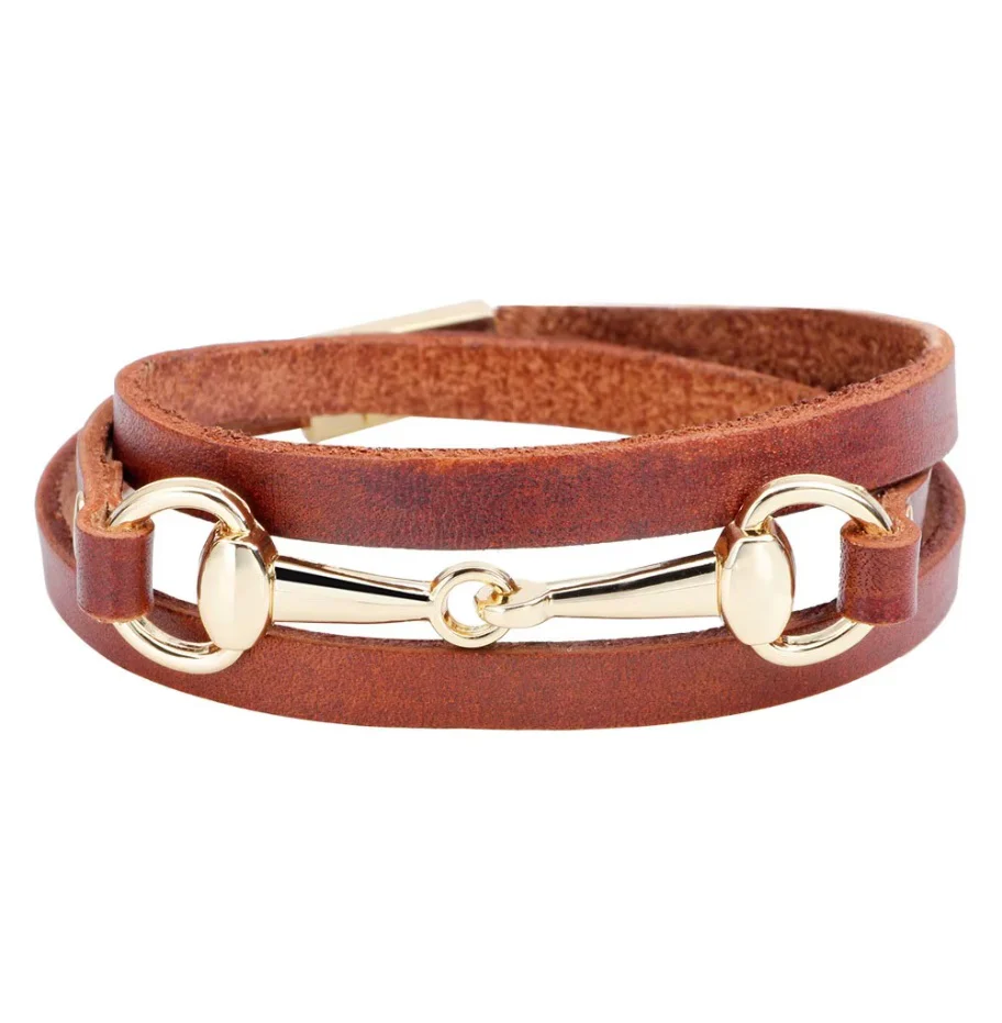 Bracelet en cuir multicouches avec mors de cheval pour un style à la fois moderne et élégant. Son design multicouches met en valeur un mors de cheval métallique, symbole d’élégance équestre et de caractère.