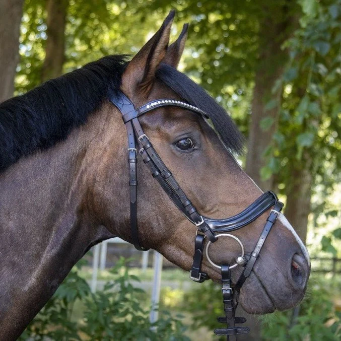 On est fan du frontal légèrement en V décoré de cristaux qui apporte une véritable touche de féminité à ce joli bridon.