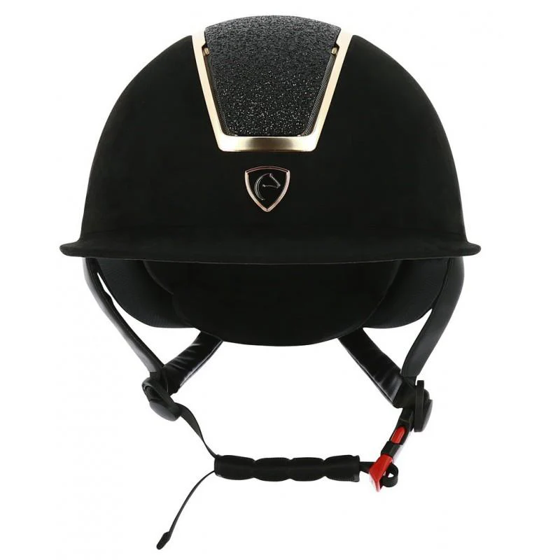 Cette bombe d’équitation Equithème comblera toutes les cavalières ! Elle est revêtue de micro-suédine très chic avec insert central noir brillant et liseré rosegold girly. La matelassure intérieure en textile absorbant apporte un maximum de confort; elle est amovible et lavable. La coque en ABS de ce casque d’équitation est hautement résistante aux impacts, même […]