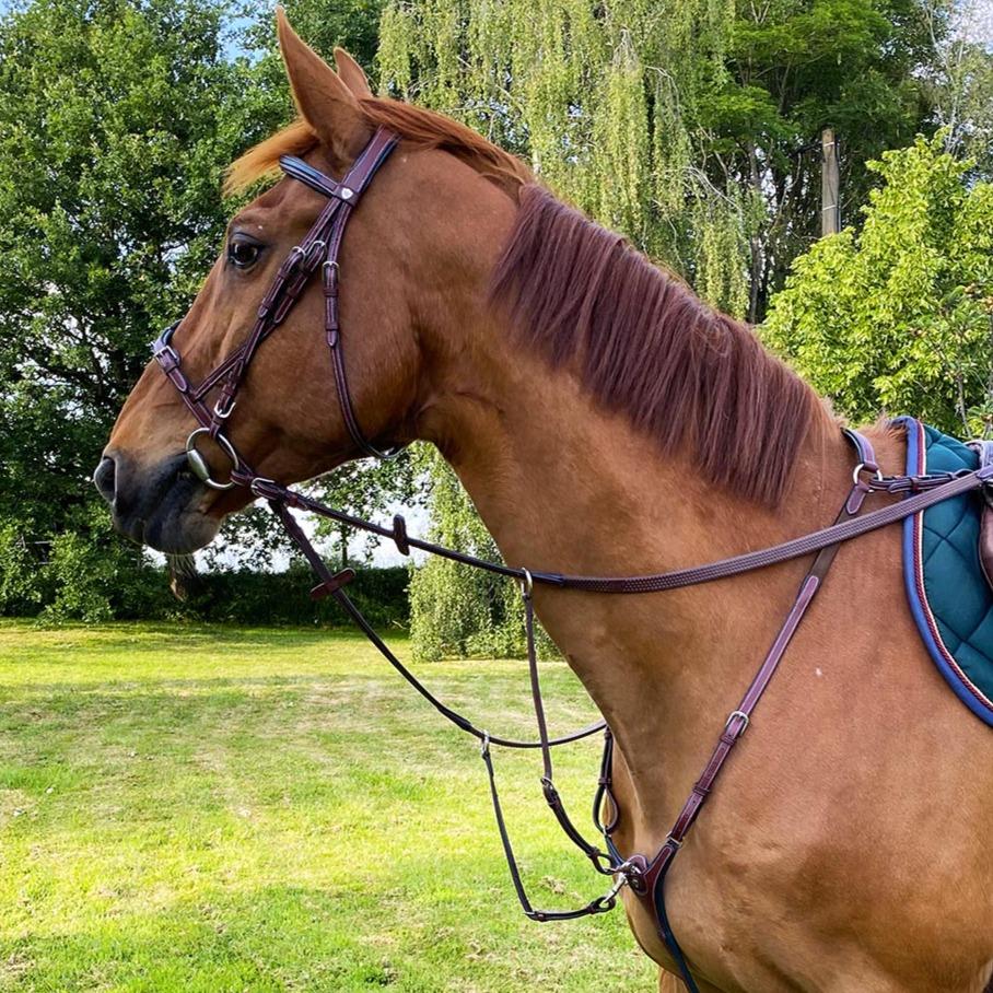 Ce collier de chasse à pont en cuir bombé carré et coloré formera un ensemble parfait avec le bridon Flags&Cup Paris.