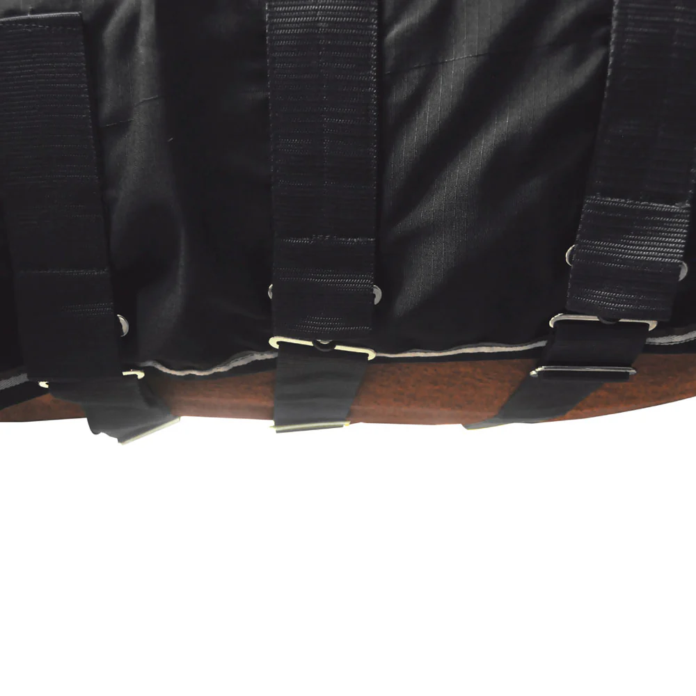 Fermeture au niveau du poitrail par 2 boucles réglables permettant un ajustement parfait.