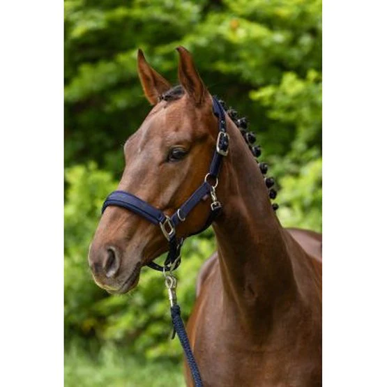Super licol, confortable et respirante avec têtière et muserolle rembourrées en matériau résistant à l‘usure, avec coutures solides.Têtière reglable des deux côtés. Ouverture et fermeture pratique du licol par mousqueton.Bouclerie metalique resistante avec œillets en laiton pour éviter que l’ardillon ne glisse de la boucle.