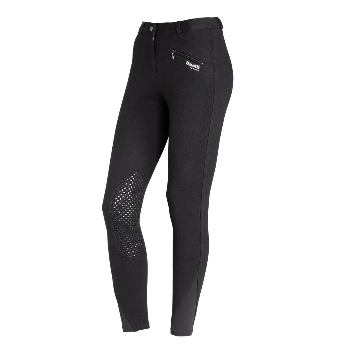 Culottes d’equitation tres confortable en coton élastique style “maille” coupe près du corps, genou avec basanes antidérapantes en silicone.Dote d’une poche frontale zippée. Bas cheville de pantalon élastiquesTissu: 95% coton et 5% élasthanne, poids standard 300 gr,