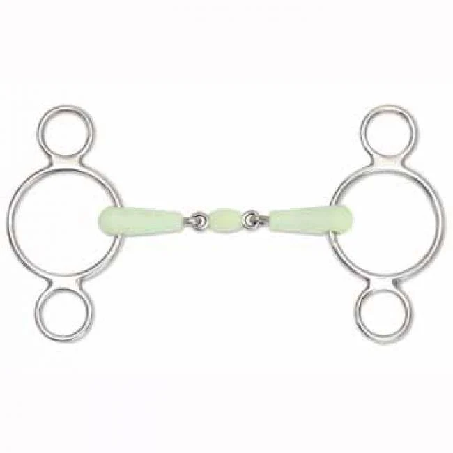 Embouchure type Pessoa avec 3 anneaux et double brise en une matiere resine plus leger et plus souple que le caoutchouc rigide.A utiliser avec ou sans alliances. En fonction de l’anneau utilisé, il permet d’avoir une action plus ou moins severe.Avec un délicieux goût de pomme, trés bien pour les chevaux sensible. longeur des Anneaux […]