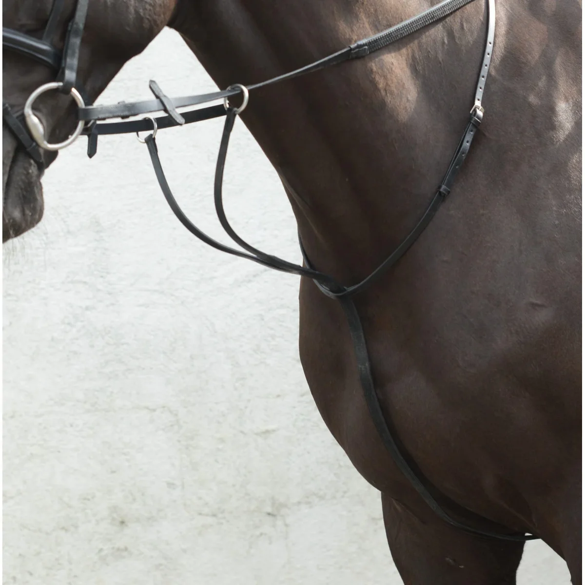 Martingale en cuir pour votre cheval ou poney.Attache à la sangle par sanglon. Bouclerie en Inox.La martingale à anneaux n’a pas pour but de faire baisser la tête du cheval, mais de l’empêcher de donner des coups de tête. Elle empêche le relèvement de l’encolure en punissant le cheval qui se donne lui-même un coup […]