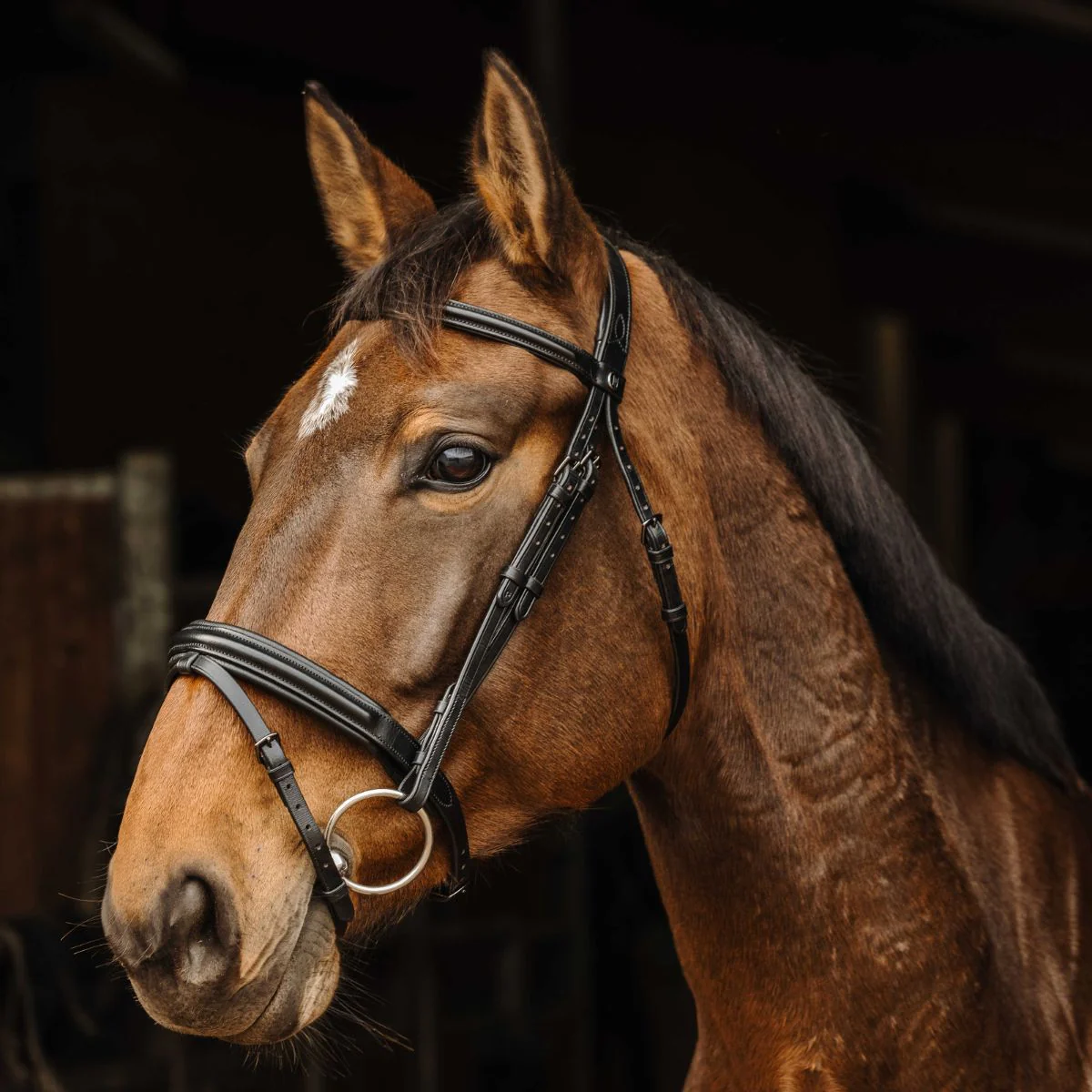 Confort quotidien avec une doublure en cuir de vachette souple sur la têtière, le frontal et la muserolle combinée, idéale pour limiter les frottements.