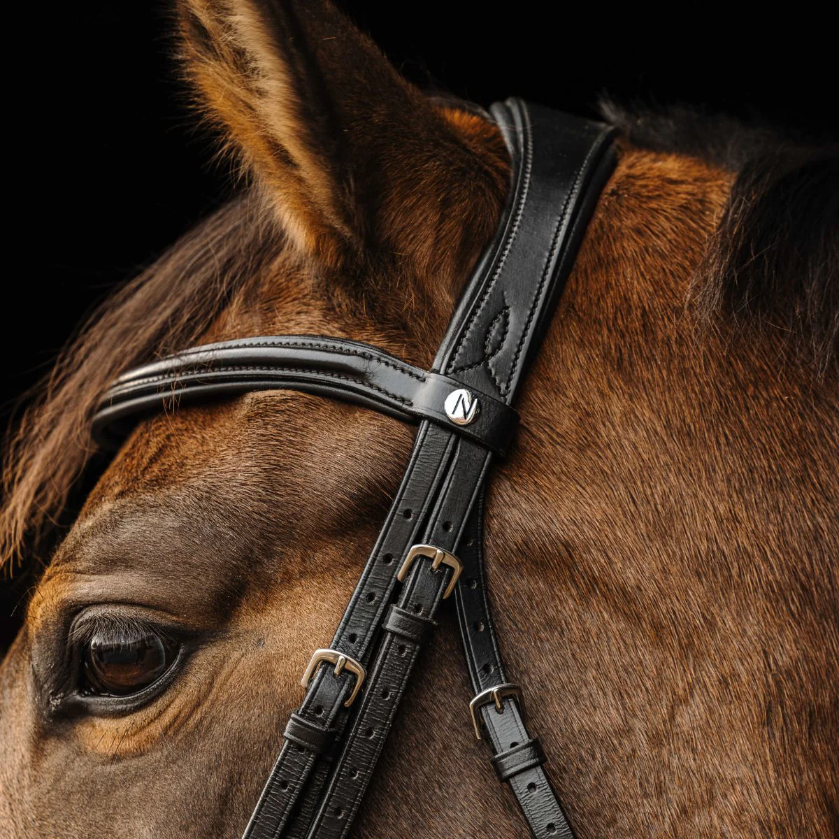 Le frontal et la muserolle doublés en cuir vachette apportent un confort supplémentaires pour le cheval.