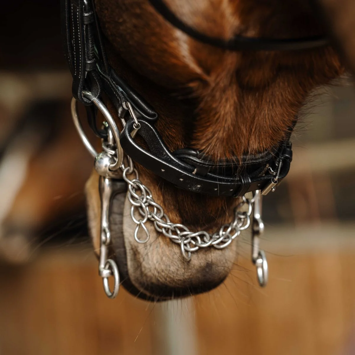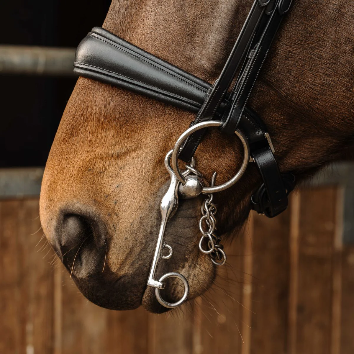 Les coutures noires offrent une finition élégante, tandis que les crochets grain d’orge sur les montants de mors permettent une utilisation pratique.