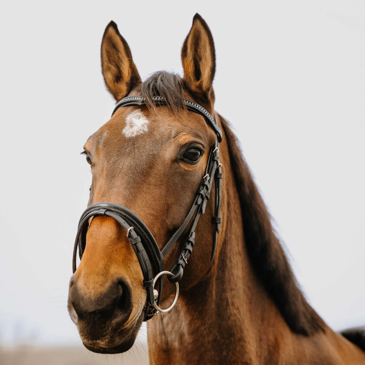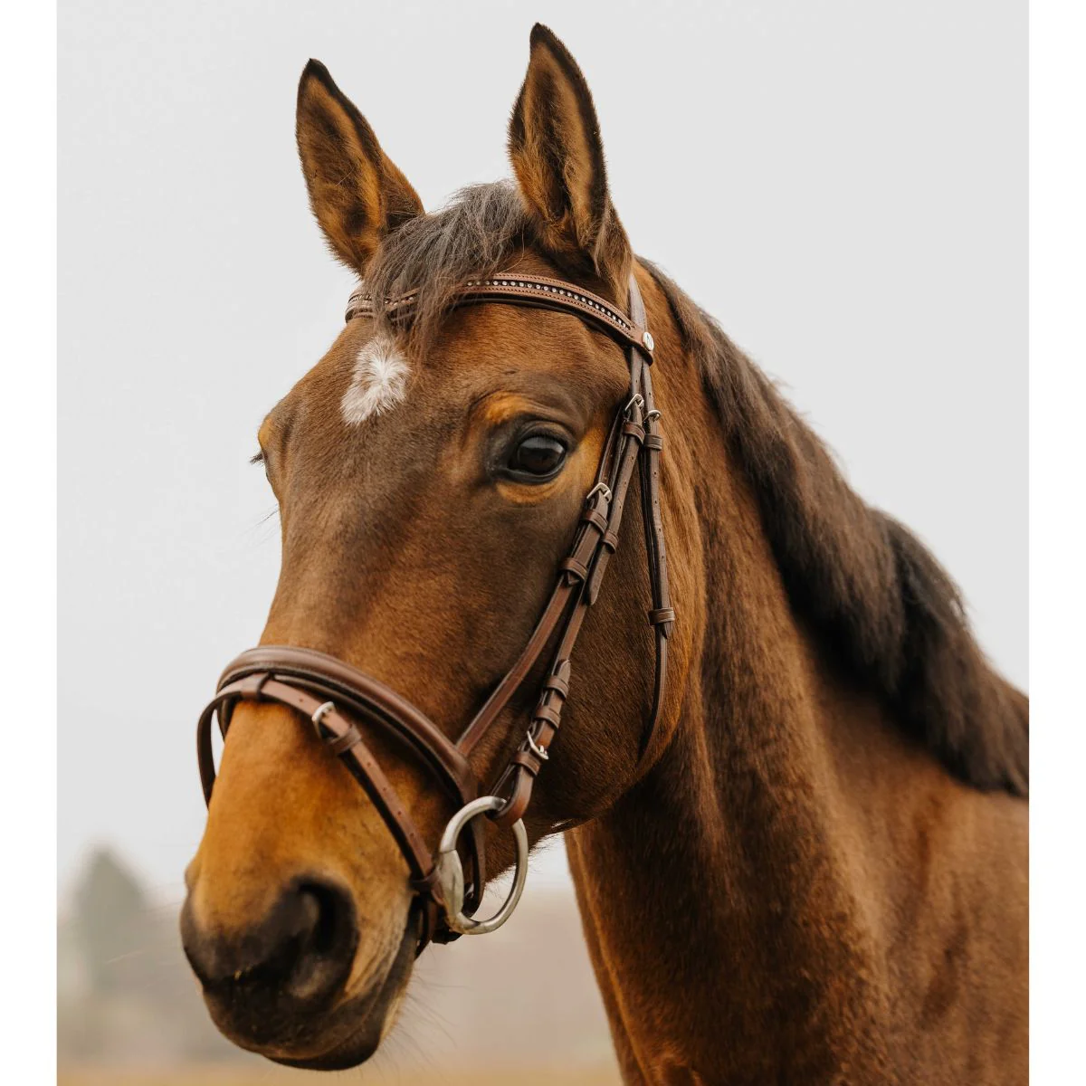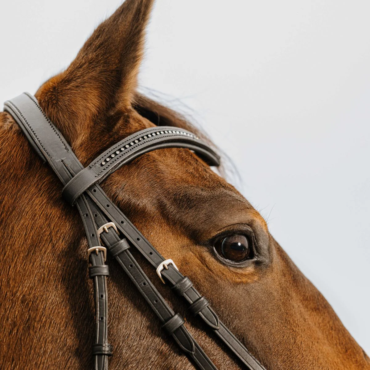 Confort souple grâce à la muserolle combinée doublée de cuir de vachette, pour un bon maintien sans rigidité.