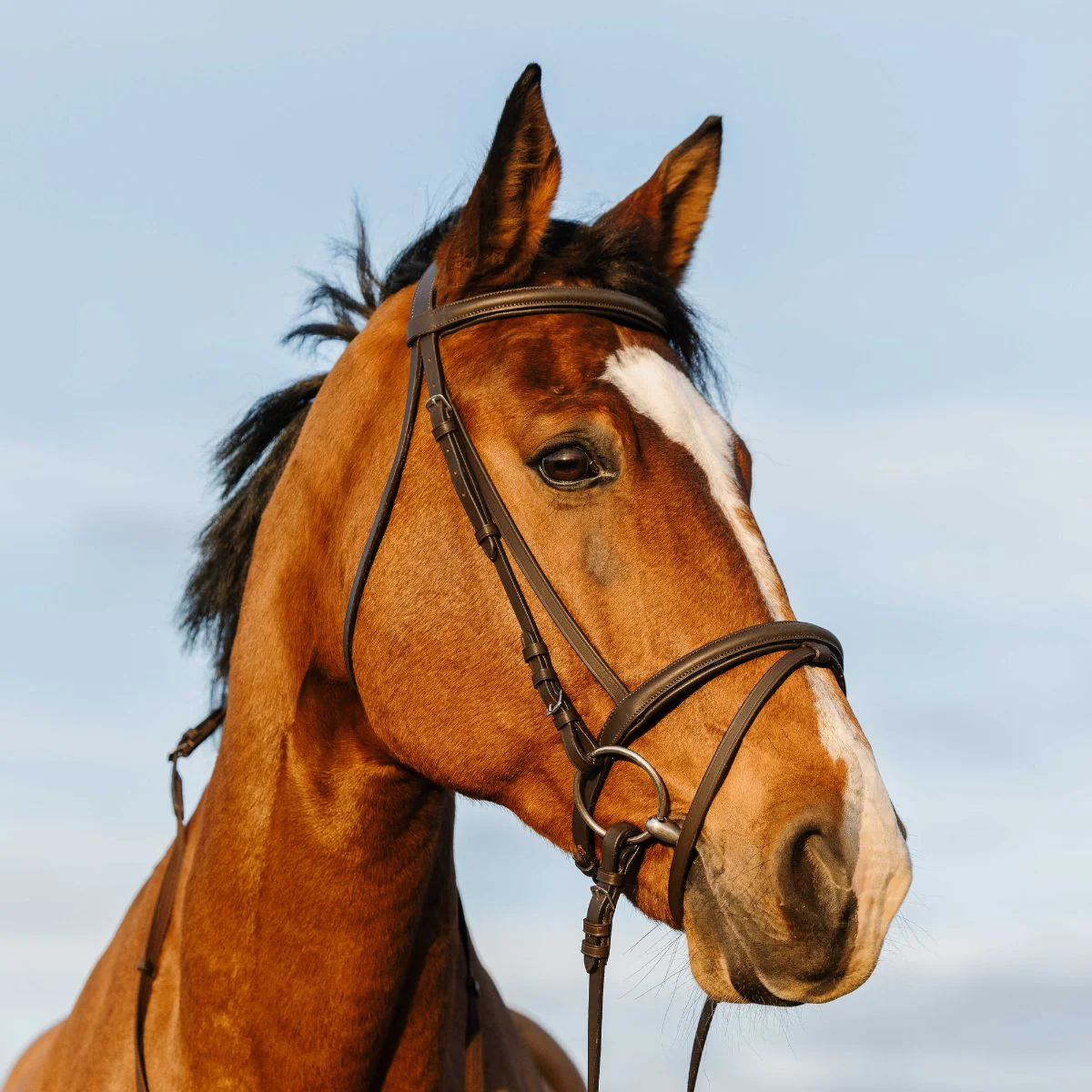 Double muserolle avec frontal doublé bombé rond matelassé garantissant un confort optimal à votre monture.