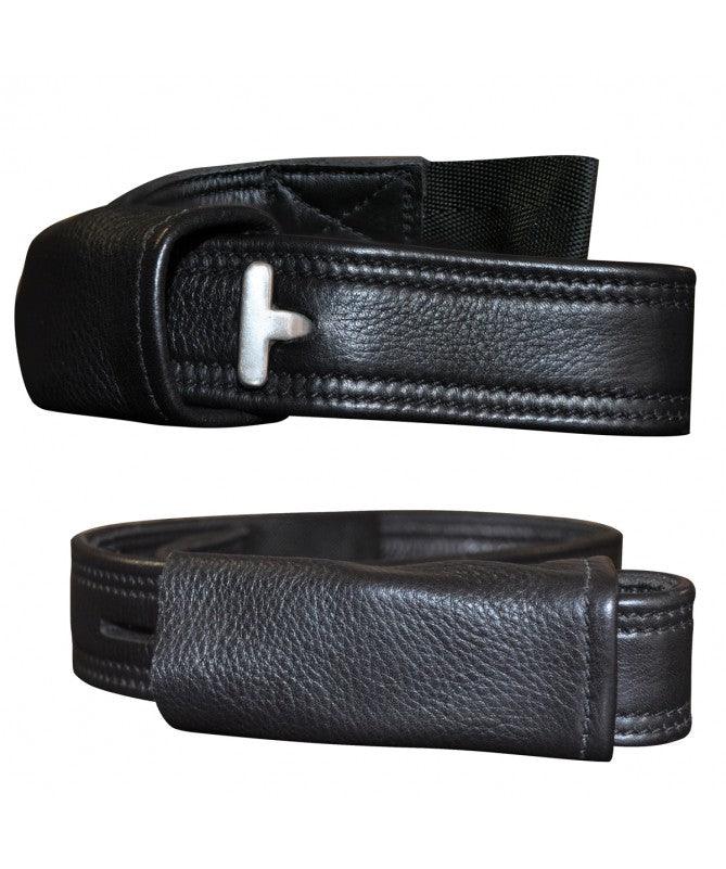 Etrivières en nylon recouvert de cuir natural plein fleur pour une souplesse et résistance inégalable.le cuir est tanne vegetal, technique respecteuse de l’environment, finition analine pour vous garantir un aspect 100% naturel.Grâce à ses crochets en T, elles sont très simples à régler et suppriment l’épaisseur d’une boucle présente dans les étrivières classiques. Cela vous procure ainsi une meilleure proximité du cheval et un confort supérieur pour votre cheval.Il y est une petite housse en cuir amovible afin de protéger l’attache en T.