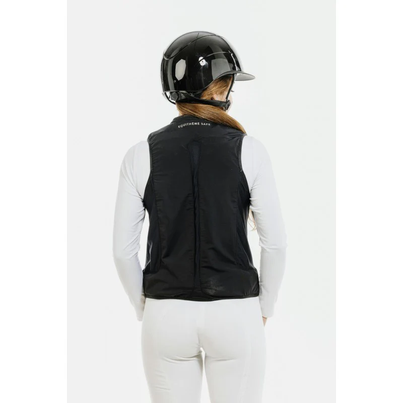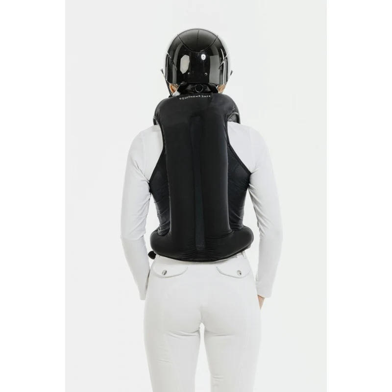Le gilet airbag EQUITHÈME Airsafe, développé par FREEJUMP, est conçu pour garantir une protection optimale aux cavaliers tout en respectant la nouvelle norme française NF S72-800-2022. Cette norme encadre des critères stricts, offrant ainsi une sécurité accrue. L’airbag protège les zones vitales du cavalier, incluant les cervicales, le dos, le thorax, le pelvis et les hanches, tout en étant léger et respirant pour un confort optimal.