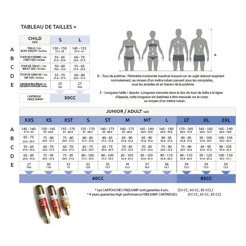 - Homologué pour des cartouches FREEJUMP : 50CC, 60CC, 85CC