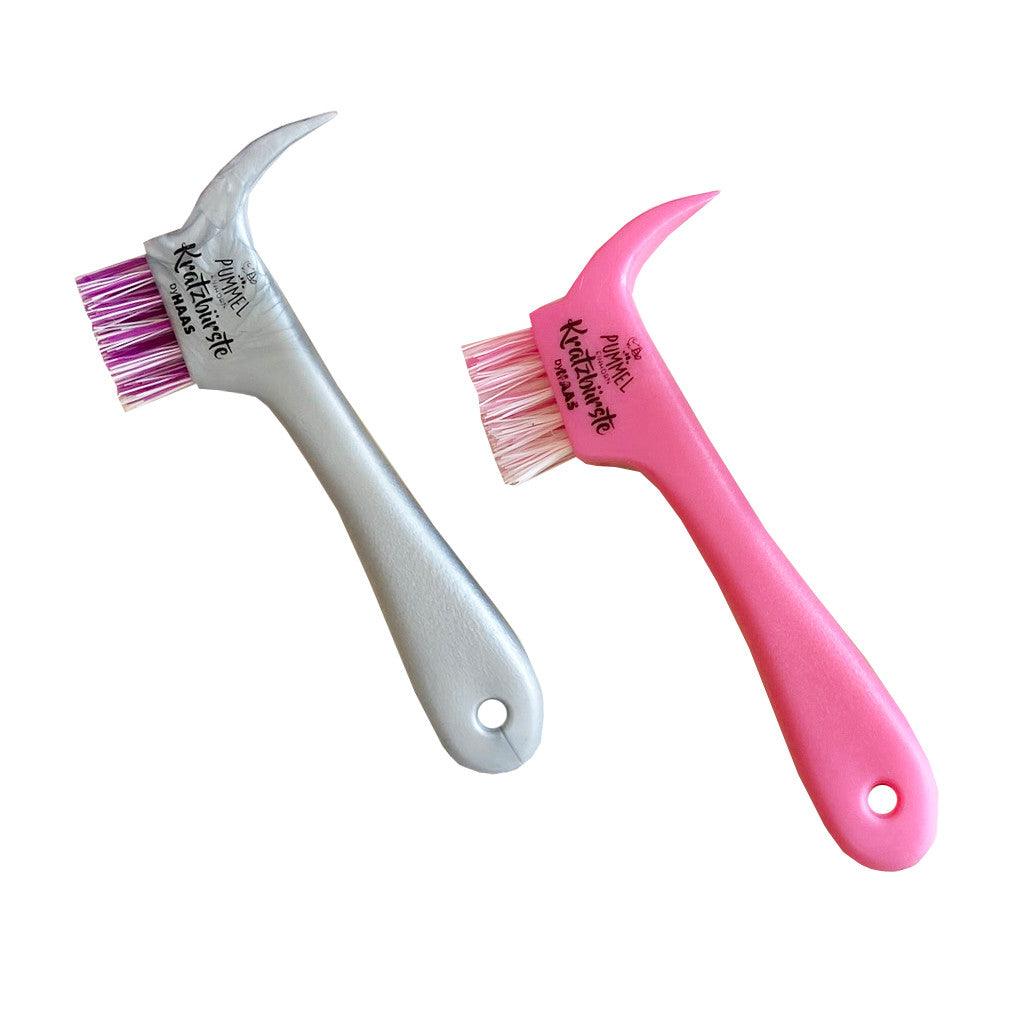 Ces cure-pieds roses et argentés fabriqués à partir de plastique moulé robuste, ils comprennent également une brosse à sabot rigide et un trou pour suspendre.