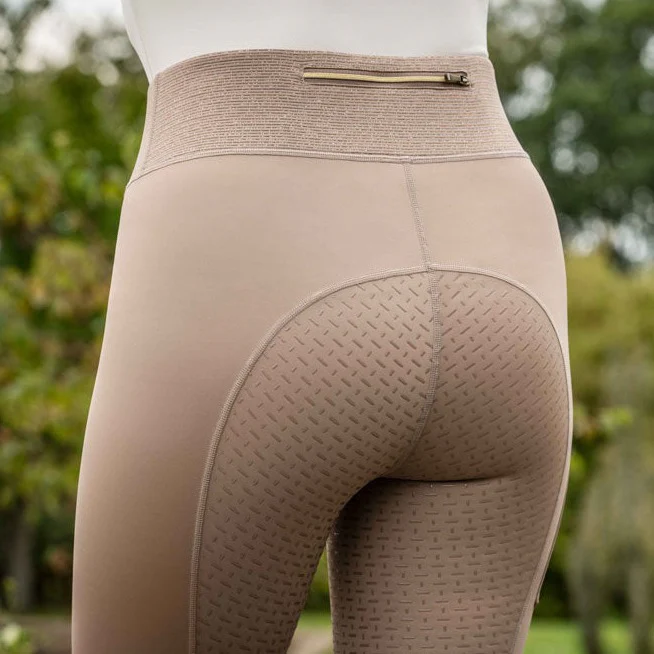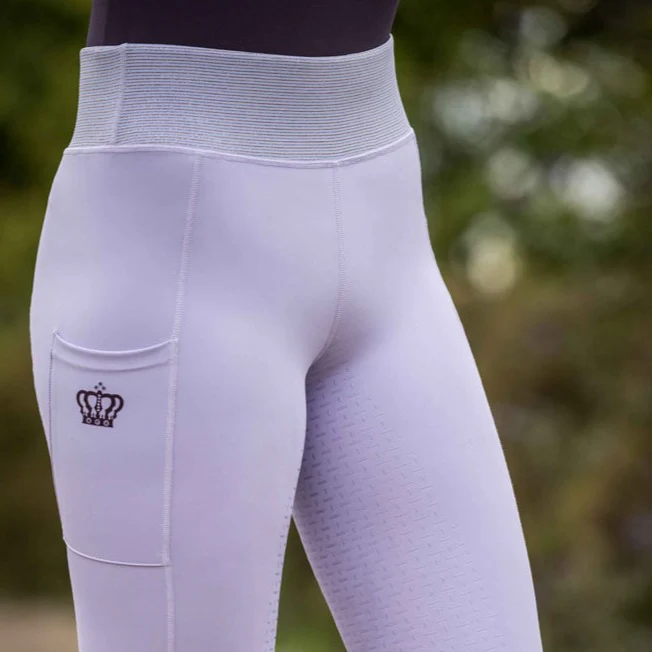 Sa taille haute avec ceinture élastiquée large en lurex girly offre un confort absolu et un maintien efficace lors de vos séances d’équitation.