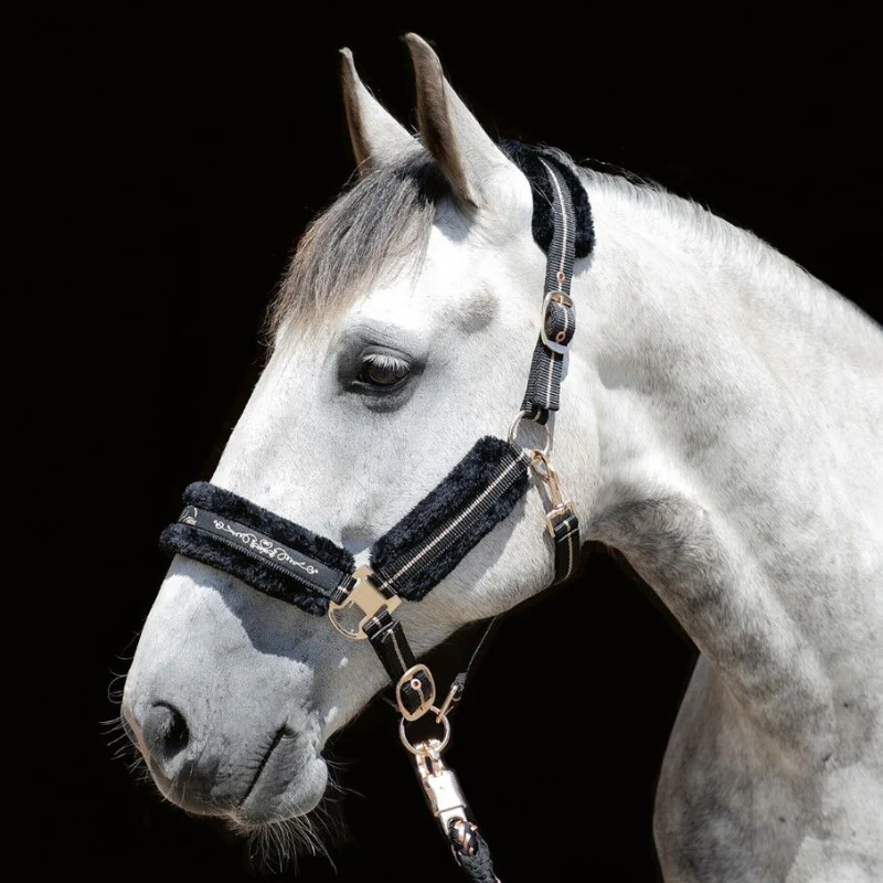 HKM vous propose ce licol doublé de fourrure synthétique, nous vous proposons également sa longe assortie.