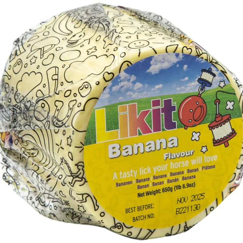 Trio gourmand : cerise, pomme et banane. Conçues pour être utilisées avec un support Likit, ces friandises prolongent l’occupation au box tout en stimulant l’appétit.