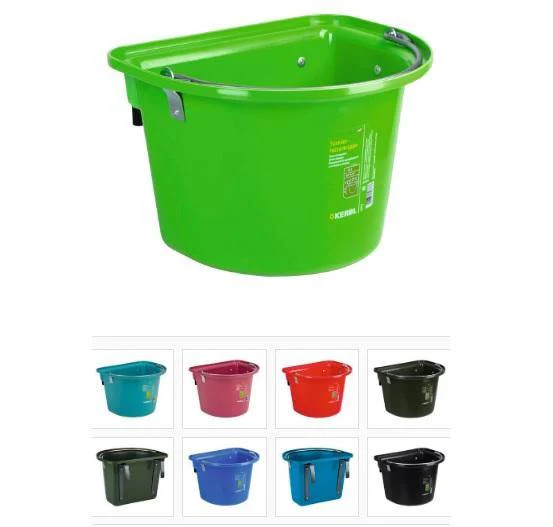 Seau mangeoire de Porte en PVC anti-éclats, très robuste et en plusiers couleurs avec crochets de suspension pour utilise dans les camions, vans ou boxes d’ecurie, Avec anse de facilite transport. Taille: 12 litres