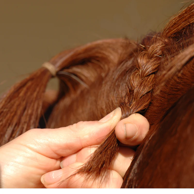 Vaporiser directement sur la crinière, puis commencer par brosser et faire des tresse.