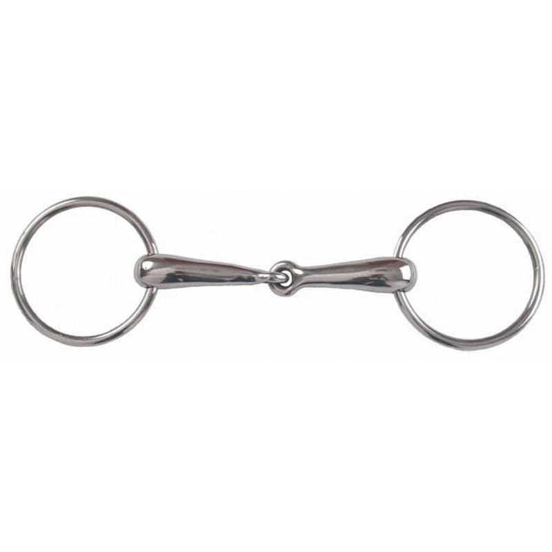 Les deux anneaux coulissent. Il faut donc faire attention à ce que les anneaux ne pincent pas les commissures des lèvres du cheval. Si le cheval se pince avec ce type de mors, vous pouvez penser à mettre des rondelles de mors.