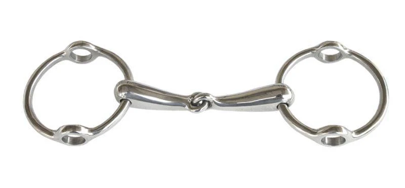 Ce mors brise permet de redresser l’avant main du cheval et donc de reporter sa masse sur l’arrière main.En acier inoxydable.Taille canons creux : 22 mm. Taille anneau principal : 75 mm