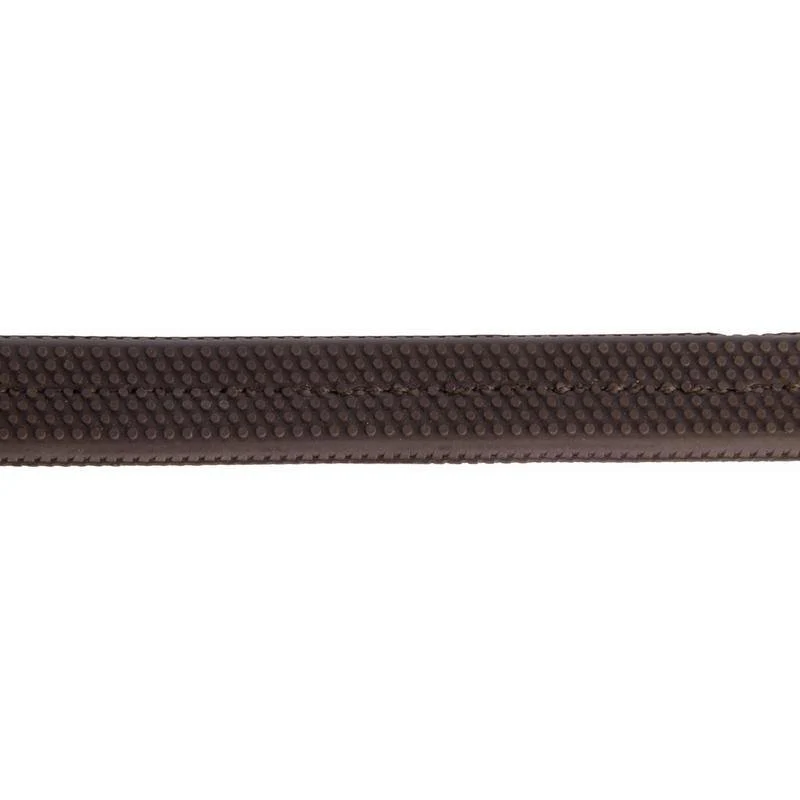 Rênes pour cheval ou poney en caoutchouc et cuir. Les petits picots améliorent l’effet anti glisse.