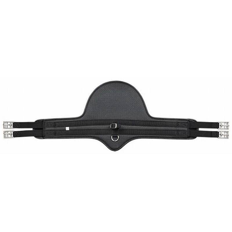 Sangle anatomique en nid d’abeille pour une meilleure aération et facilité de nettoyage. Renfort en nylon. D’attache pour fixer les enrênements. Nous avons rajouté une boucle pour vos enrênements sans mousqueton. Boucles à rouleaux et sanglons élastiques des deux côtés.