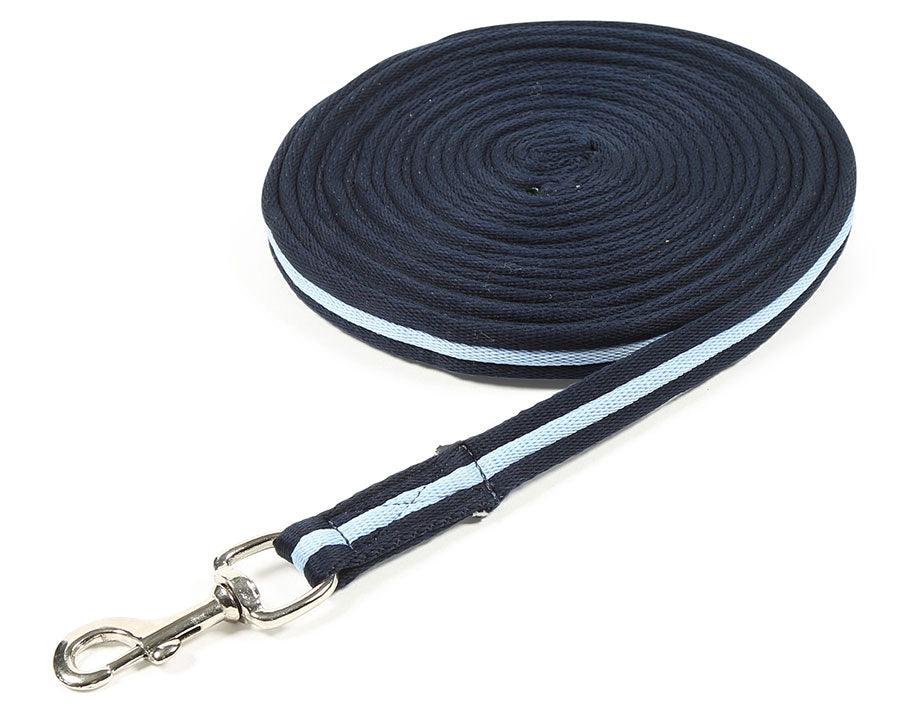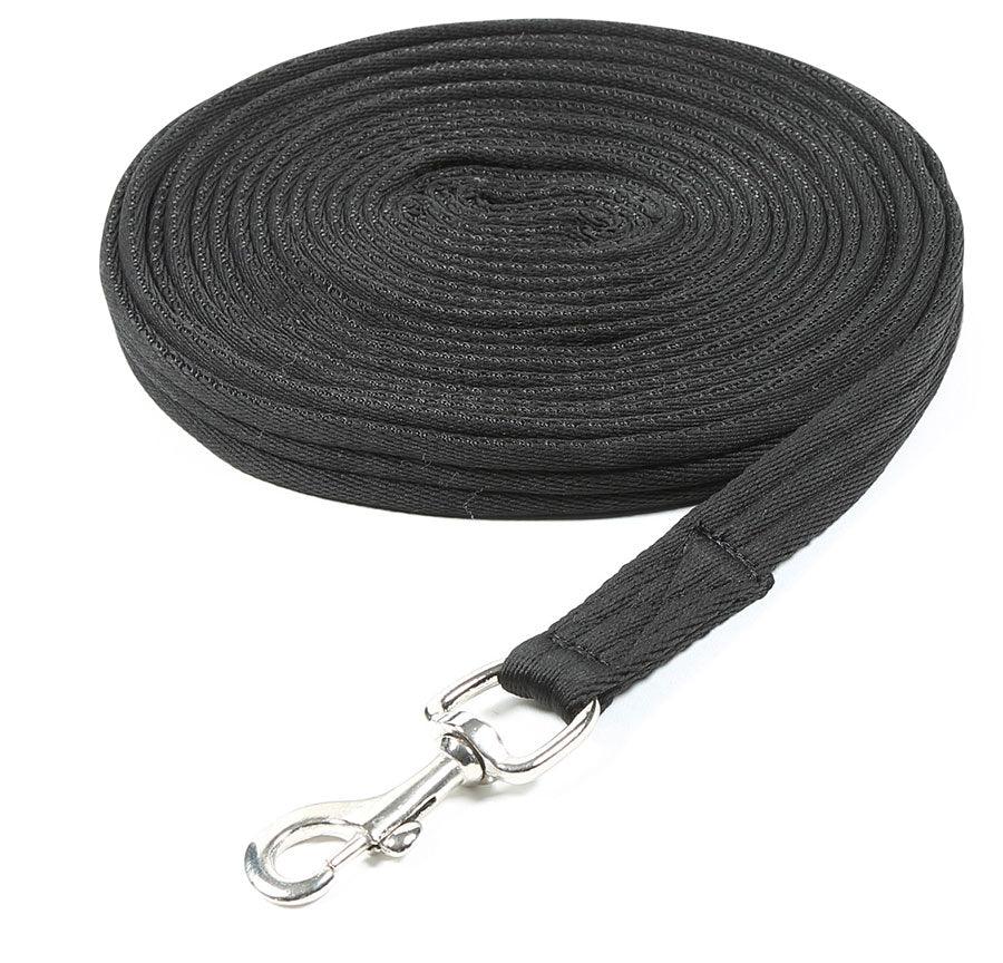 Pour votre Cheval ou Poney une longe en nylon doux et confortable avec poignee et a l’autre cote une mousqueton a oeil tournant.Longuer de 8m